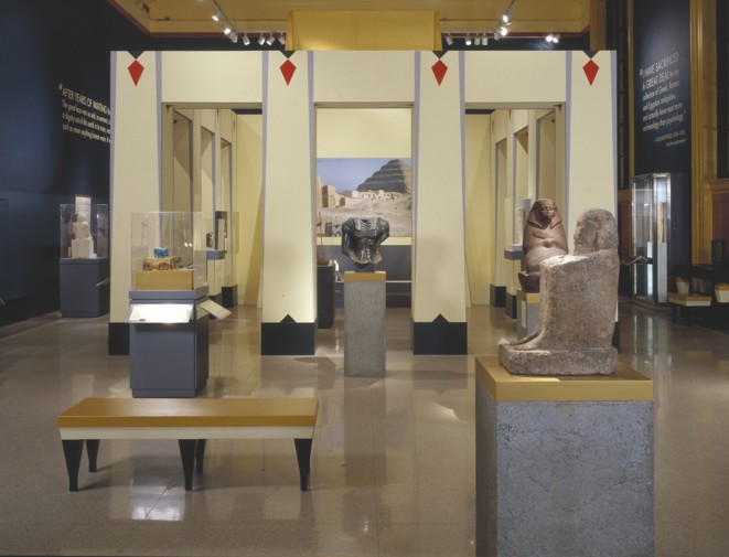 Project: Egypt Reborn: Art for Eternity Client: Brooklyn Museum of Art Pedestals and vitrines of fastidious workmanship fitted to each work of art are intermingled with pedestals of a unique approved, tinted cement material. |
